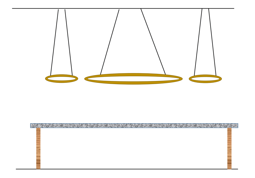 Think about four or five smaller rings dancing over a dining room table. How about a ring at each corner of a large, square island? Three or five rings placed in the center of a bedroom tray ceiling will certainly add a look that departs from the norm. We already use multiples over countertops. Rings could be a nice variant, especially if combined with some of the ideas listed next.