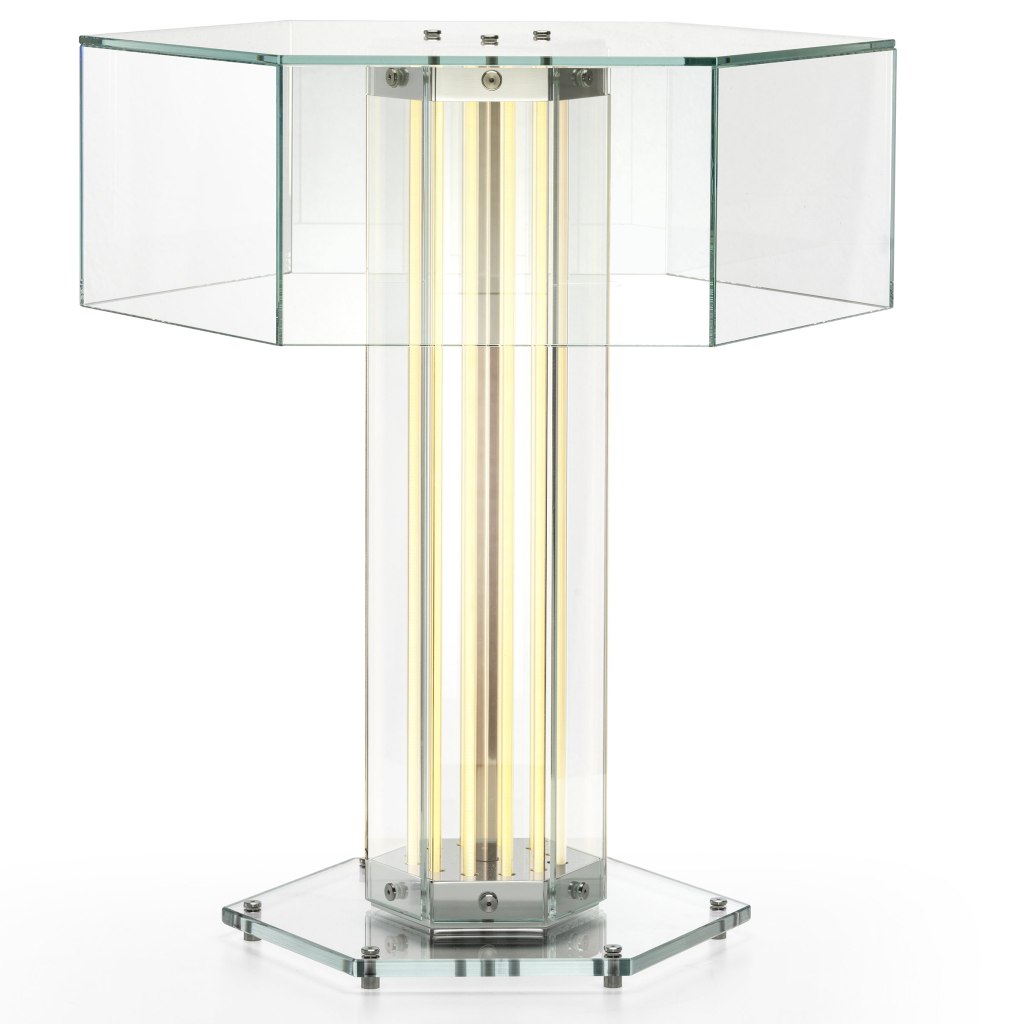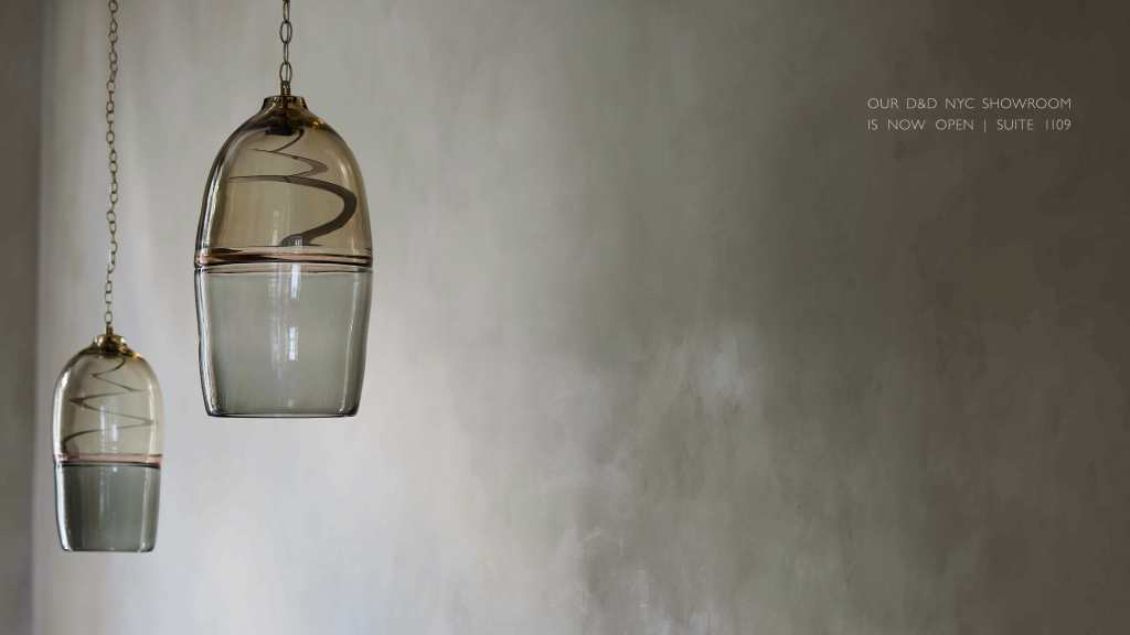 Also seeking “the next diffuser” is Ochre. The window of their SOHO showroom was graced with Marea. Rather than using beige, they employed warm smoke variations on deep blown glass. Because of a slender disc of LED, the entire Murano diffuser became the focal point, uninterrupted by a pedestrian light bulb.