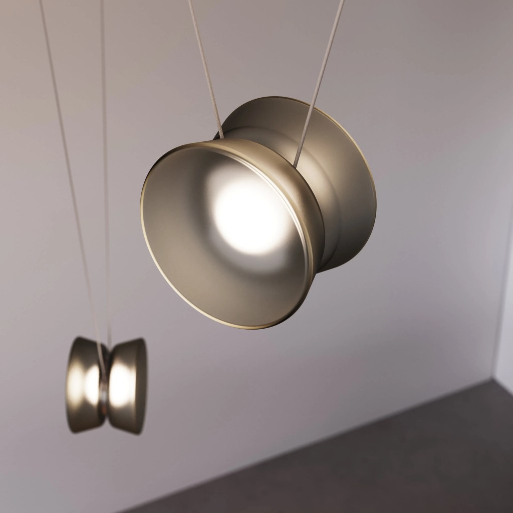 In my youth, I was barely proficient with a yoyo, but I do remember being amazed at the trick others could perform. Borrowing from this childhood toy, the YoYo Adjustable Pendant (think about the cradle yoyo trick) from Sonneman is fun and functional. Suspended from a narrow cable, the lighted unit height can be adjusted as needed.