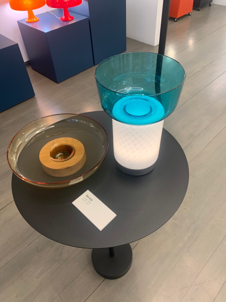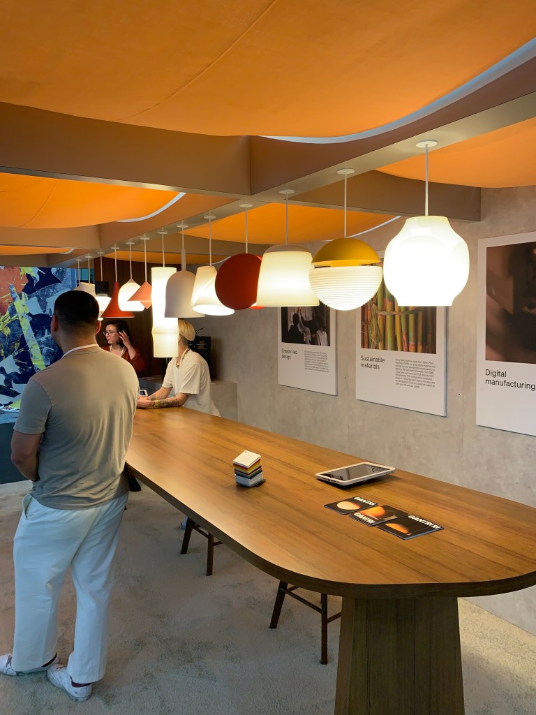 Gantri showed a row of pendants fabricated from a plant-based polymer. What made them interesting were the designs. They were a cut above the typically offered “sustainable” products. In conversation with the staff, they told me they prided themselves on their relationship with their designers. The biodegradable product is 3-D printed in California and customization is available. There are lots of interesting things to see here. I encourage you to scan their website.
